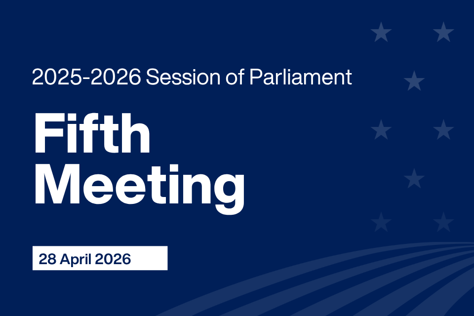 The Fifth Meeting of the 2025–2026 Session of Parliament will begin at 2:00pm on Wednesday, 29 April 2026, in the House of Parliament. Members will consider national priorities, including key legislation, policy matters and governance issues.